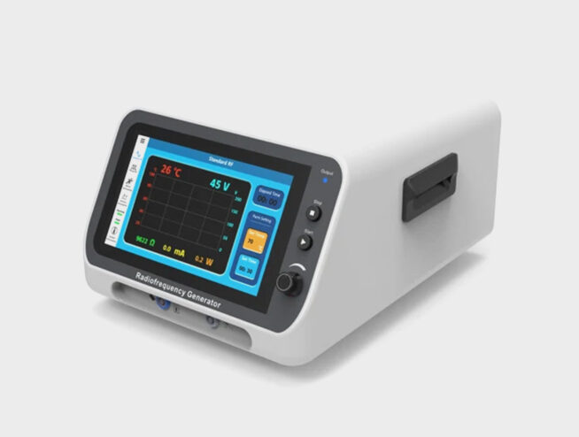 Procedure using heat generated from radio waves to interrupt nerve conduction and reduce pain signals.